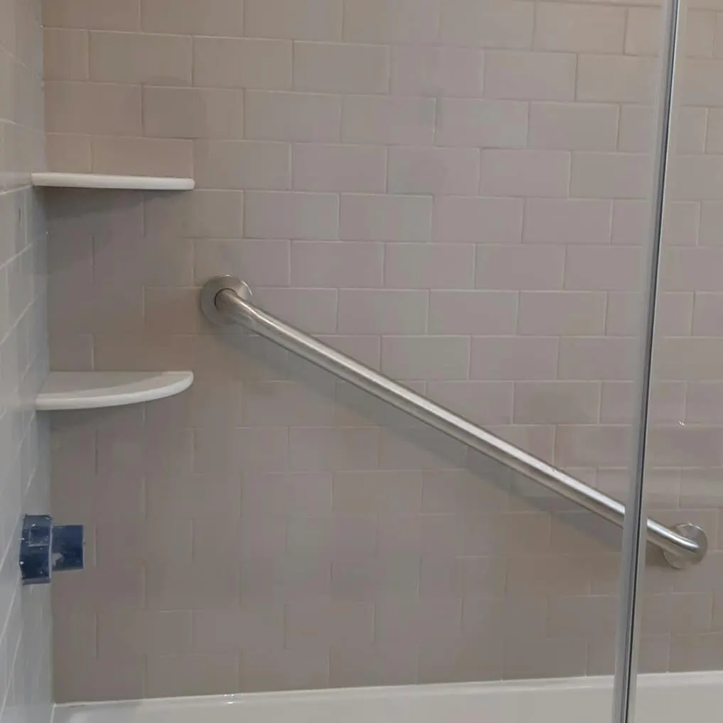 Corner Shelf, adds functional shelving in a Shower to keep products away from the floor