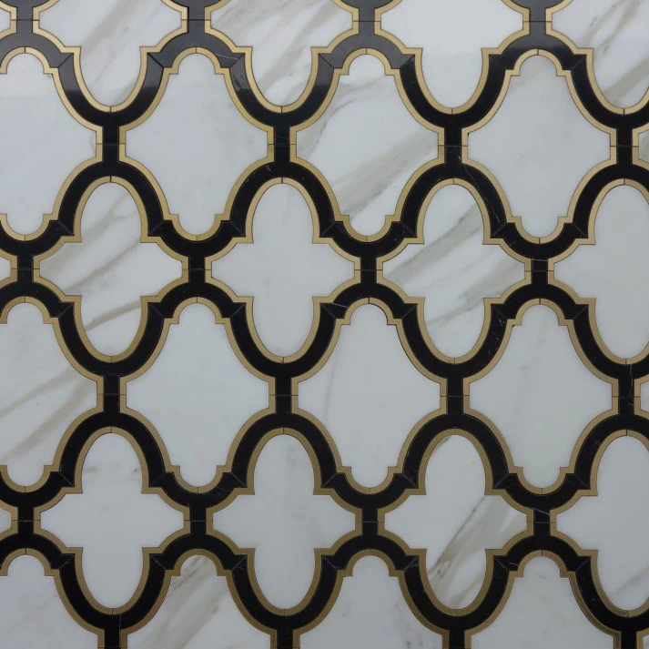 Arabesque Calacatta Nero Marquina Brass Polished Mosaic Waterjet