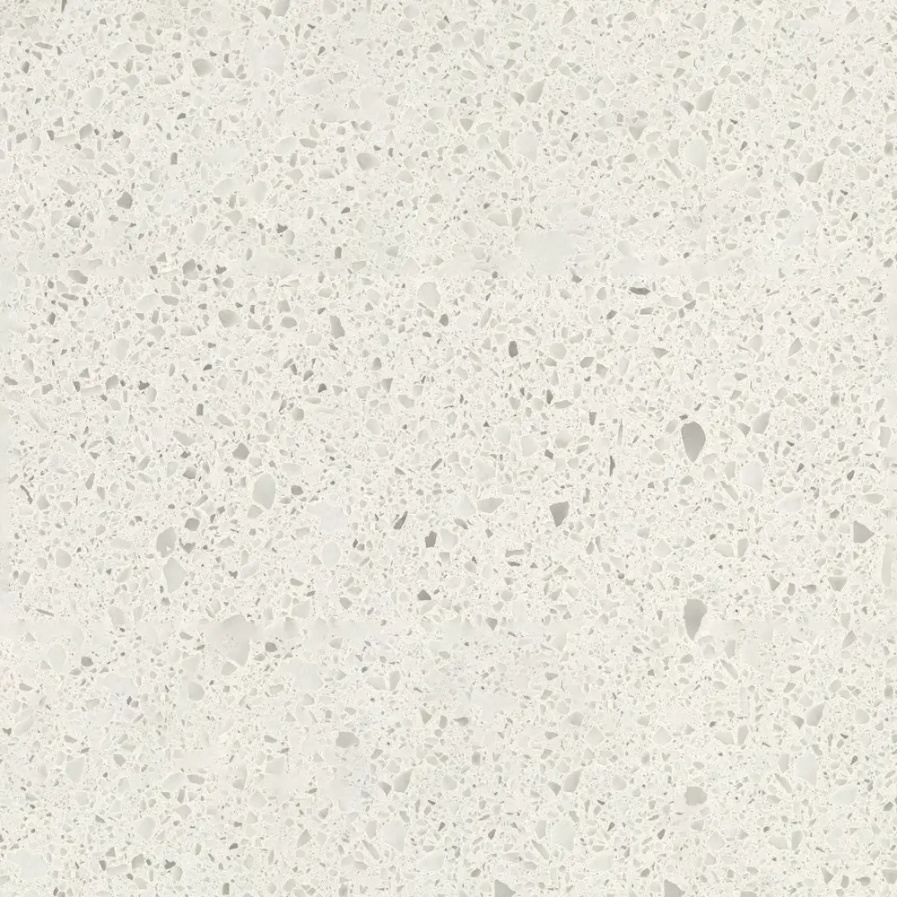 Chunky course-grained textures and neutral-coloured mineral chips, on a classic white canvas.