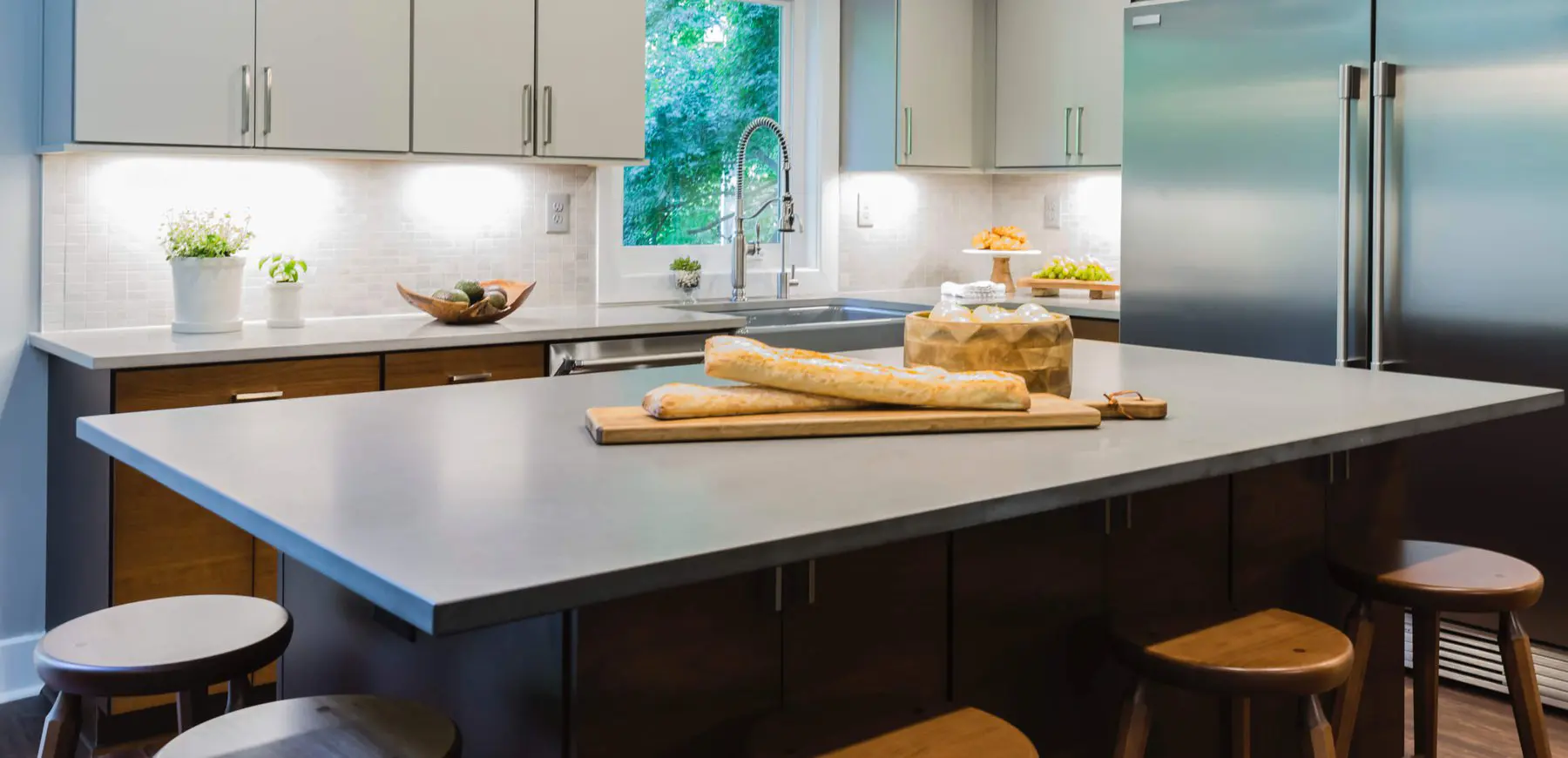 Urban and contemporary, this smooth pattern offers subtle veining in creamy white on a soft grey background, evoking images of cool slate.